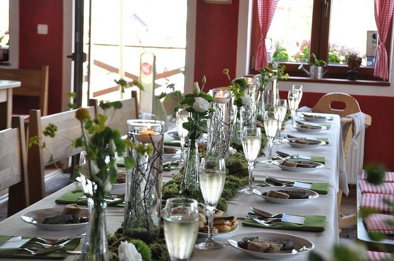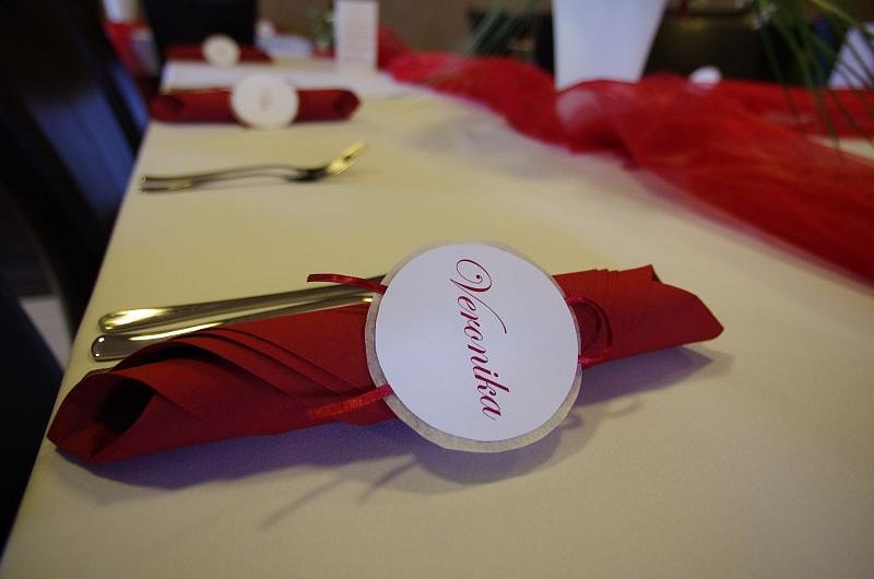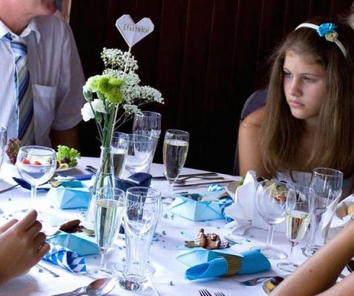 Samozřejmostí je použití jmenovek, které jsme schopni navrhnout a zajistit tisk. Na dekorování slavnostních tabulí a ostatních prostor je využíváno rozmanitých materiálů od výzdoby živými květinami přes výzdobu suchými květy a plody po dekorace z papíru, drátu nebo organzy. Vše dle přání zákazníka.