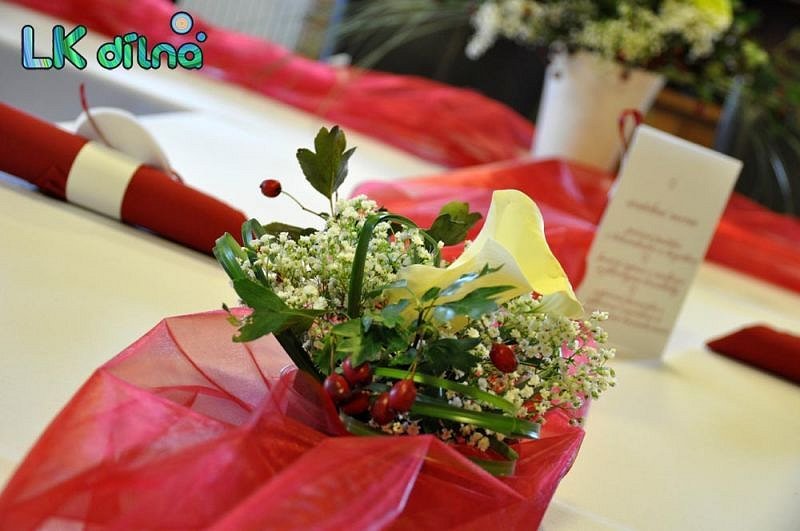 LKdílna zajišťuje výzdobu svateb. Dekorace jsou vyrobene na míru zákazníka. Je možno zajistit vše od květin pro svatebčany po výzdobu svatební tabule, místa obřadu, aut a dalších maličkostí. Naše výzdoba vaší svatby bude kreativní a finančně dostupná.